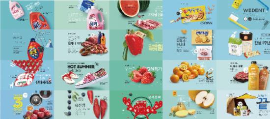 emart网站banner在辅助图形的应用上特别广泛,一来增加画面丰富性一来强化产品特性。主要是提取产品相关的元素进行图形化,有小面积的纯属强化功能或增加趣味性的添加、也有大范围的对产品纹样或特性的延展。主要还是在产品特点基础上进行提取。
