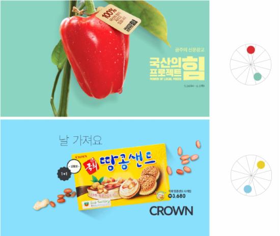我们发现emart直接用互补色设计的案例并不多见,主要还是在补色分割范围内的应用变化,这样既能达到很好的视觉对比效果又能使画面融合度较高。