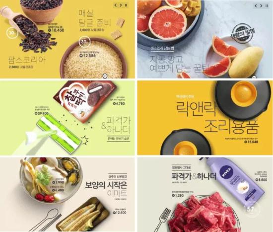 emart在补色上的应用比较广泛和娴熟。主要还是因为整个网站调性很活泼,加之产品都属于色彩明快的快消品类,色彩上的愉悦感更容易激起点击欲望。