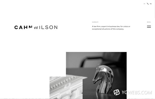 卡恩·威尔逊(Cahn Wilson)的网站很好地展示了缺乏色彩的设计美学。该网站主要展示一些带有灰度图像的黑白图像,干净、清晰。