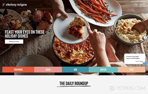 今天,网页设计最常见的设计灵感之一就是使用复古色彩或版式来传达一种怀旧感。克里斯西·泰根(Chrissy Teigen)的新网站就是一个很好的例子,他使用具有复古风格的配色方案(复古但明亮)以及很带有怀旧风格的字体。